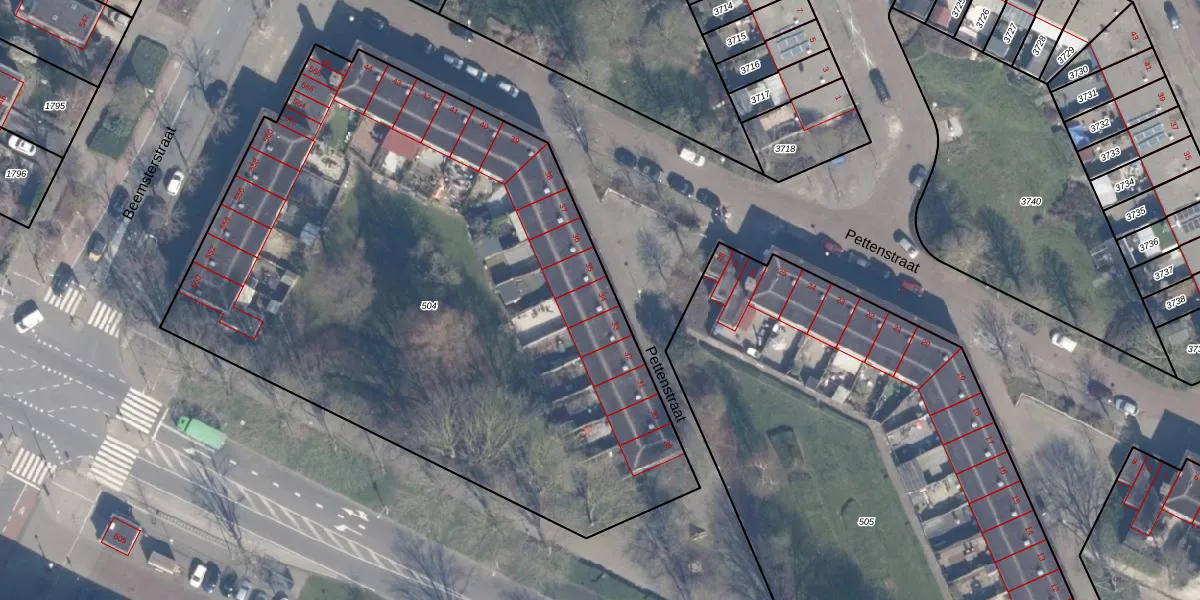 Het perceel waarop Pettenstraat 34 staat heeft een oppervlakte van 4053 m². Dit is een zeer groot perceel. De perceeloppervlakte wordt geregistreerd door het Kadaster. Gedetailleerde informatie over de maten van dit perceel kunt u vinden in het rapport Kadastrale kaart met maatvoering van Pettenstraat 34.