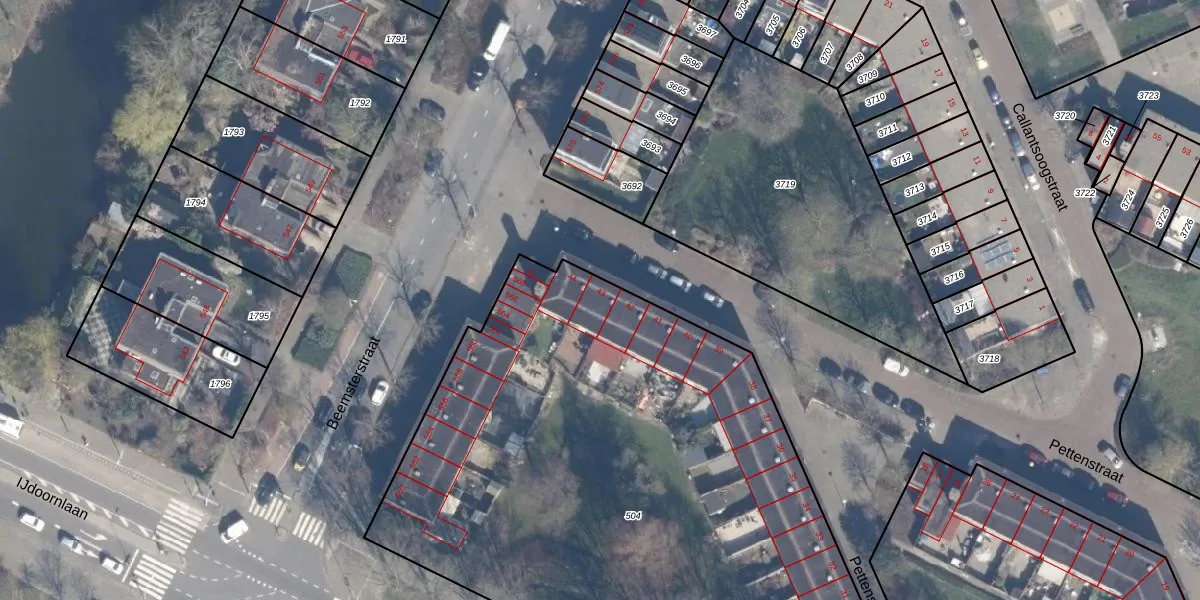 Het perceel waarop Pettenstraat 43 staat heeft een oppervlakte van 4053 m². Dit is een zeer groot perceel. De perceeloppervlakte wordt geregistreerd door het Kadaster. Gedetailleerde informatie over de maten van dit perceel kunt u vinden in het rapport Kadastrale kaart met maatvoering van Pettenstraat 43.