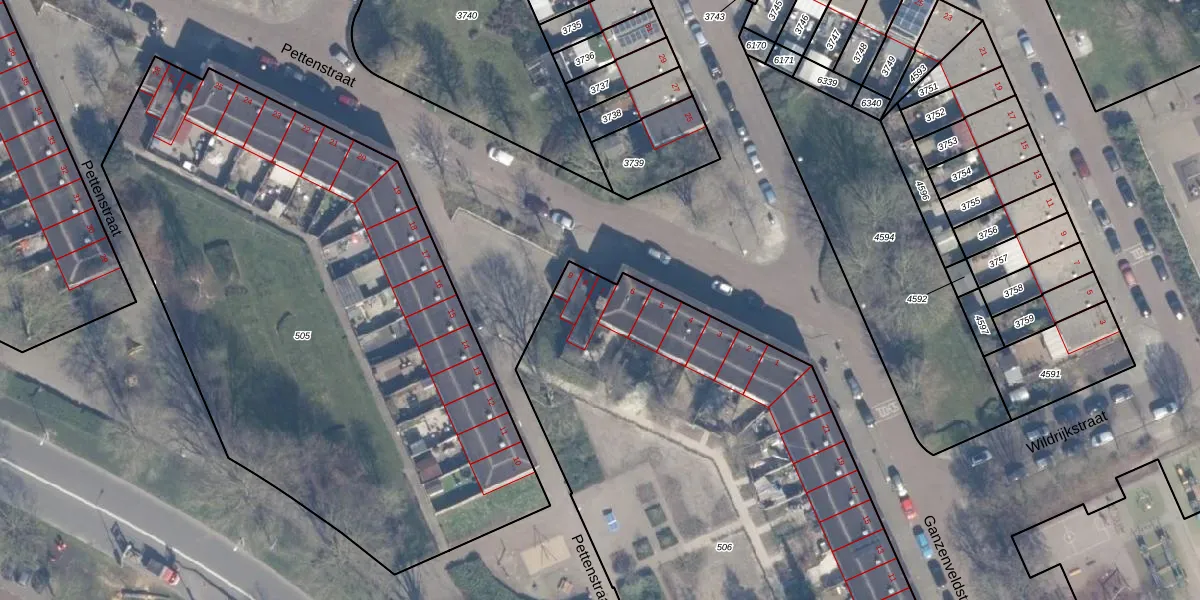 Het perceel waarop Pettenstraat 7 staat heeft een oppervlakte van 3444 m². Dit is een zeer groot perceel. De perceeloppervlakte wordt geregistreerd door het Kadaster. Gedetailleerde informatie over de maten van dit perceel kunt u vinden in het rapport Kadastrale kaart met maatvoering van Pettenstraat 7.