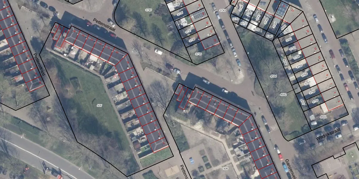 Het perceel waarop Pettenstraat 9 staat heeft een oppervlakte van 3444 m². Dit is een zeer groot perceel. De perceeloppervlakte wordt geregistreerd door het Kadaster. Gedetailleerde informatie over de maten van dit perceel kunt u vinden in het rapport Kadastrale kaart met maatvoering van Pettenstraat 9.