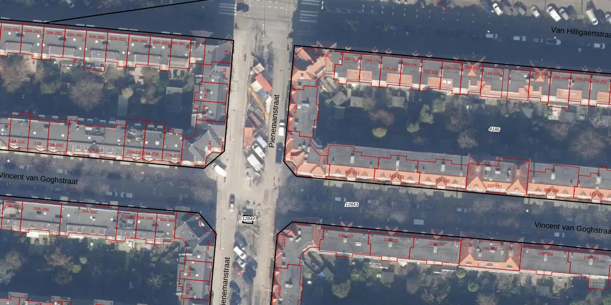 Het perceel waarop Pienemanstraat 23 staat heeft een oppervlakte van 5947 m². Dit is een zeer groot perceel. De perceeloppervlakte wordt geregistreerd door het Kadaster. Gedetailleerde informatie over de maten van dit perceel kunt u vinden in het rapport Kadastrale kaart met maatvoering van Pienemanstraat 23.