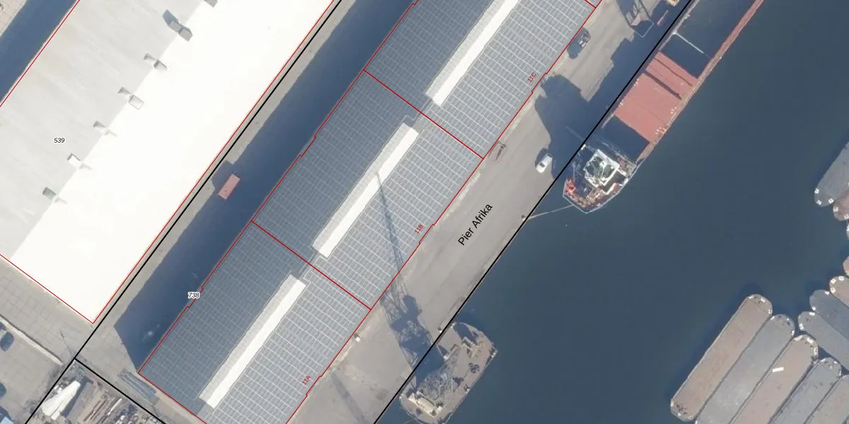 Het perceel waarop Pier Afrika 11-B staat heeft een oppervlakte van 2,4 ha. Dit is een zeer groot perceel. De perceeloppervlakte wordt geregistreerd door het Kadaster. Gedetailleerde informatie over de maten van dit perceel kunt u vinden in het rapport Kadastrale kaart met maatvoering van Pier Afrika 11-B.