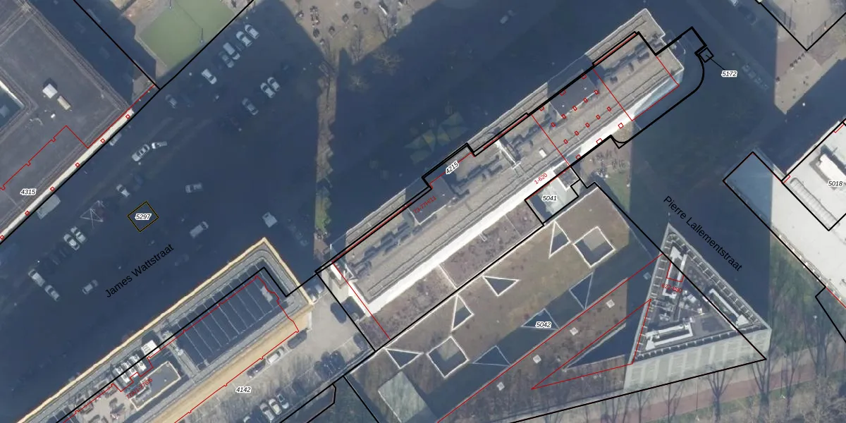 Het perceel waarop Pierre Lallementstraat 430 staat heeft een oppervlakte van 2040 m². Dit is een zeer groot perceel. De perceeloppervlakte wordt geregistreerd door het Kadaster. Gedetailleerde informatie over de maten van dit perceel kunt u vinden in het rapport Kadastrale kaart met maatvoering van Pierre Lallementstraat 430.