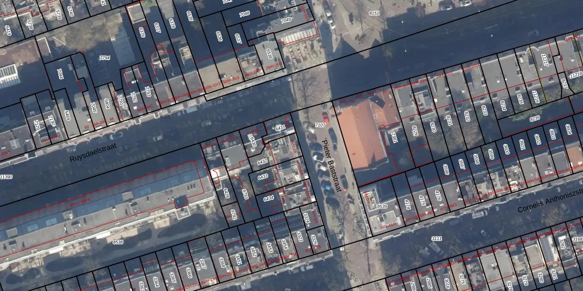 Het adres is gelegen op perceel 6432 in de sectie U en de kadastrale gemeente Amsterdam. De kadastrale aanduiding is aldus ASD17-U-6432. Het perceel is kleiner dan gemiddeld in Amsterdam. Het perceel is 129 m² groot, terwijl het gemiddelde ligt op 394,52 m². Het grootste perceel in de kadastrale gemeente is 22,9 ha. Het kleinste perceel heeft een oppervlakte van 0 m². Op het perceel zijn 6 adressen aanwezig. De huidige grenzen van het perceel zijn digitaal in de Basisregistratie Kadaster (BRK) geregistreerd op 25-01-2007.