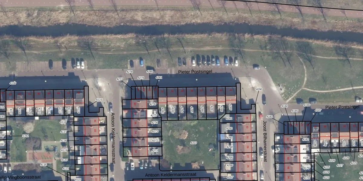 Gebruik de zoekbalk of klik op een perceel voor informatie over de adressen binnen dit perceel.