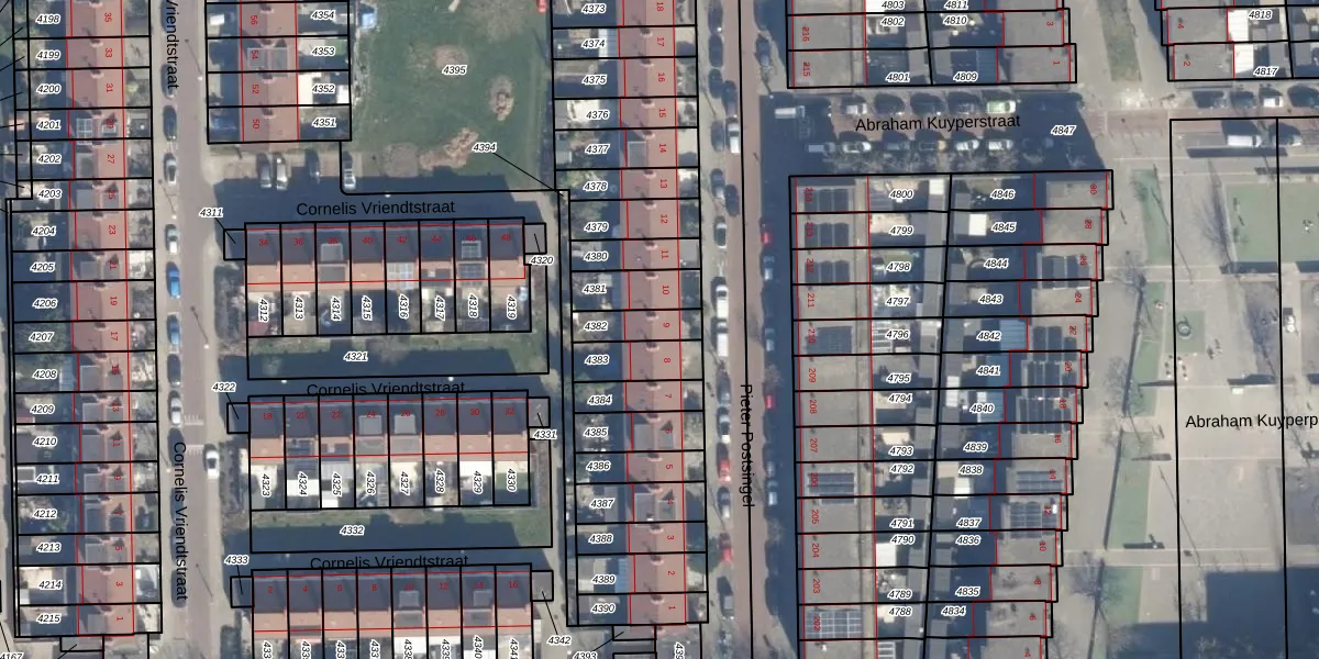 Gebruik de zoekbalk of klik op een perceel voor informatie over de adressen binnen dit perceel.