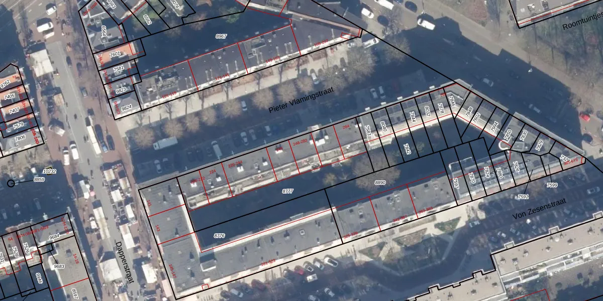Pieter Vlamingstraat 270 is gelegen op kadastraal perceel ASD15S8777. Deze kadastrale aanduiding is uniek en wordt gebruikt door het Kadaster om eigendomsrechten en andere zakelijke rechten vast te leggen. Het perceel maakt onderdeel uit van de kadastrale gemeente Amsterdam.