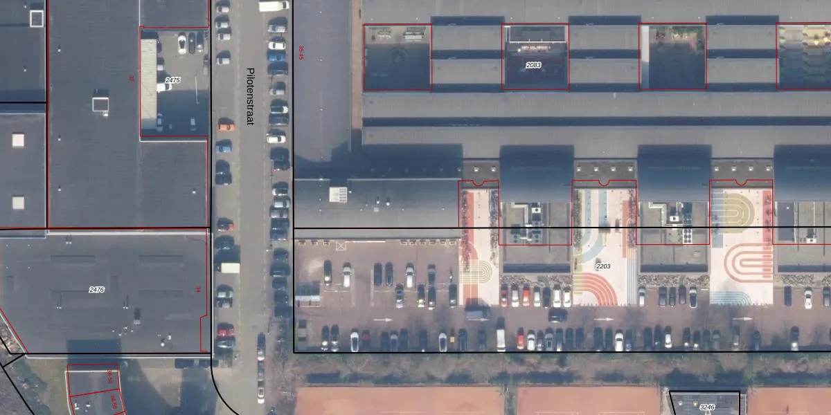Het perceel waarop Pilotenstraat 39-B staat heeft een oppervlakte van 8780 m². Dit is een zeer groot perceel. De perceeloppervlakte wordt geregistreerd door het Kadaster. Gedetailleerde informatie over de maten van dit perceel kunt u vinden in het rapport Kadastrale kaart met maatvoering van Pilotenstraat 39-B.
