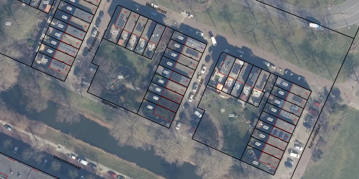 Gebruik de zoekbalk of klik op een perceel voor informatie over de adressen binnen dit perceel.