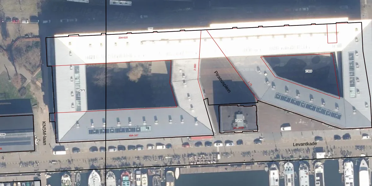 Het perceel waarop Piraeusplein 26 staat heeft een oppervlakte van 7168 m². Dit is een zeer groot perceel. De perceeloppervlakte wordt geregistreerd door het Kadaster. Gedetailleerde informatie over de maten van dit perceel kunt u vinden in het rapport Kadastrale kaart met maatvoering van Piraeusplein 26.