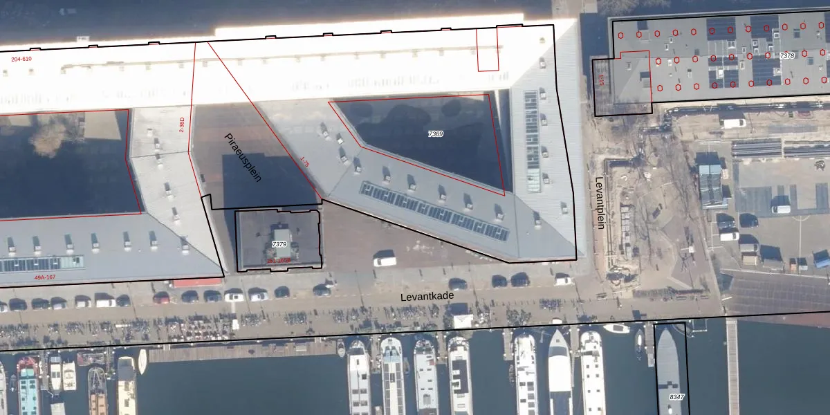 Het perceel waarop Piraeusplein 43 staat heeft een oppervlakte van 7168 m². Dit is een zeer groot perceel. De perceeloppervlakte wordt geregistreerd door het Kadaster. Gedetailleerde informatie over de maten van dit perceel kunt u vinden in het rapport Kadastrale kaart met maatvoering van Piraeusplein 43.
