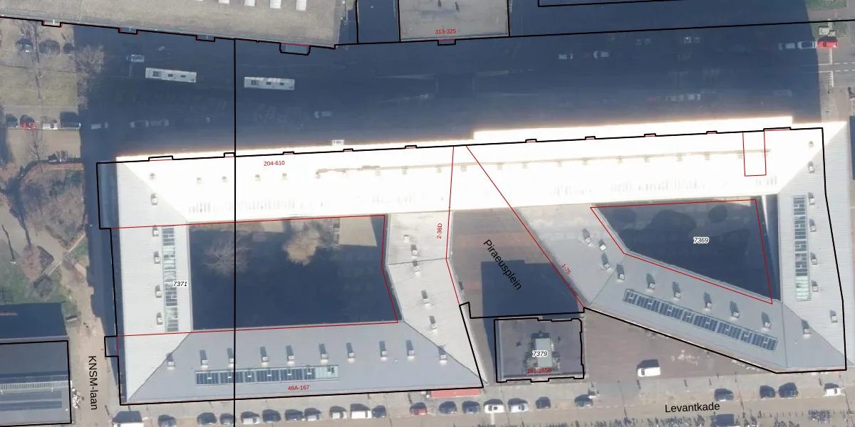 Het perceel waarop Piraeusplein 6 staat heeft een oppervlakte van 7168 m². Dit is een zeer groot perceel. De perceeloppervlakte wordt geregistreerd door het Kadaster. Gedetailleerde informatie over de maten van dit perceel kunt u vinden in het rapport Kadastrale kaart met maatvoering van Piraeusplein 6.