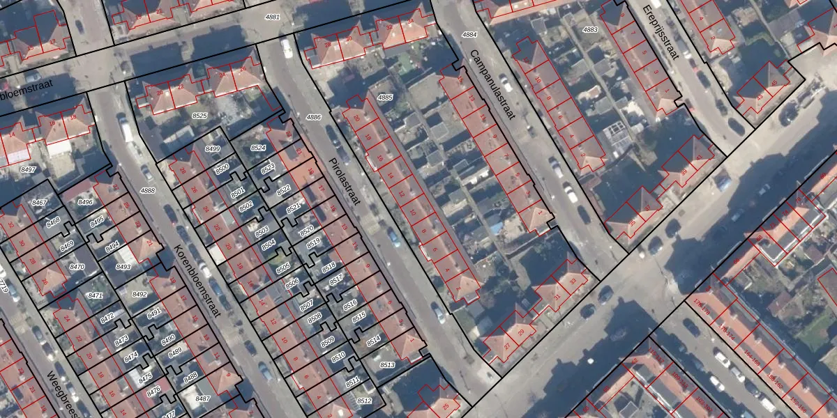 Het perceel waarop Pirolastraat 10 staat heeft een oppervlakte van 2900 m². Dit is een zeer groot perceel. De perceeloppervlakte wordt geregistreerd door het Kadaster. Gedetailleerde informatie over de maten van dit perceel kunt u vinden in het rapport Kadastrale kaart met maatvoering van Pirolastraat 10.