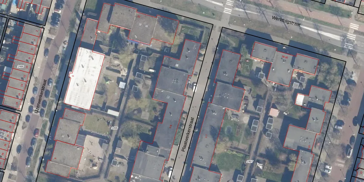 Het perceel waarop Plaatwerkerstraat 4 staat heeft een oppervlakte van 9370 m². Dit is een zeer groot perceel. De perceeloppervlakte wordt geregistreerd door het Kadaster. Gedetailleerde informatie over de maten van dit perceel kunt u vinden in het rapport Kadastrale kaart met maatvoering van Plaatwerkerstraat 4.