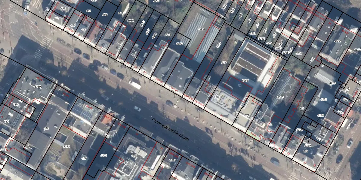 Plantage Middenlaan 21 is gelegen op kadastraal perceel ASD11O3303. Deze kadastrale aanduiding is uniek en wordt gebruikt door het Kadaster om eigendomsrechten en andere zakelijke rechten vast te leggen. Het perceel maakt onderdeel uit van de kadastrale gemeente Amsterdam.