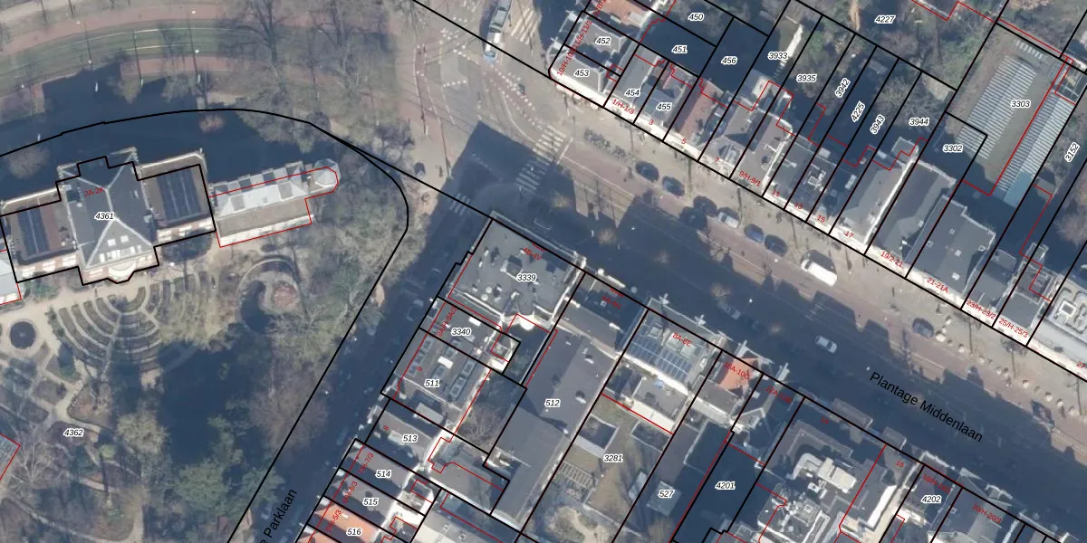 Plantage Middenlaan 4-U is gelegen op kadastraal perceel ASD11O3339. Deze kadastrale aanduiding is uniek en wordt gebruikt door het Kadaster om eigendomsrechten en andere zakelijke rechten vast te leggen. Het perceel maakt onderdeel uit van de kadastrale gemeente Amsterdam.