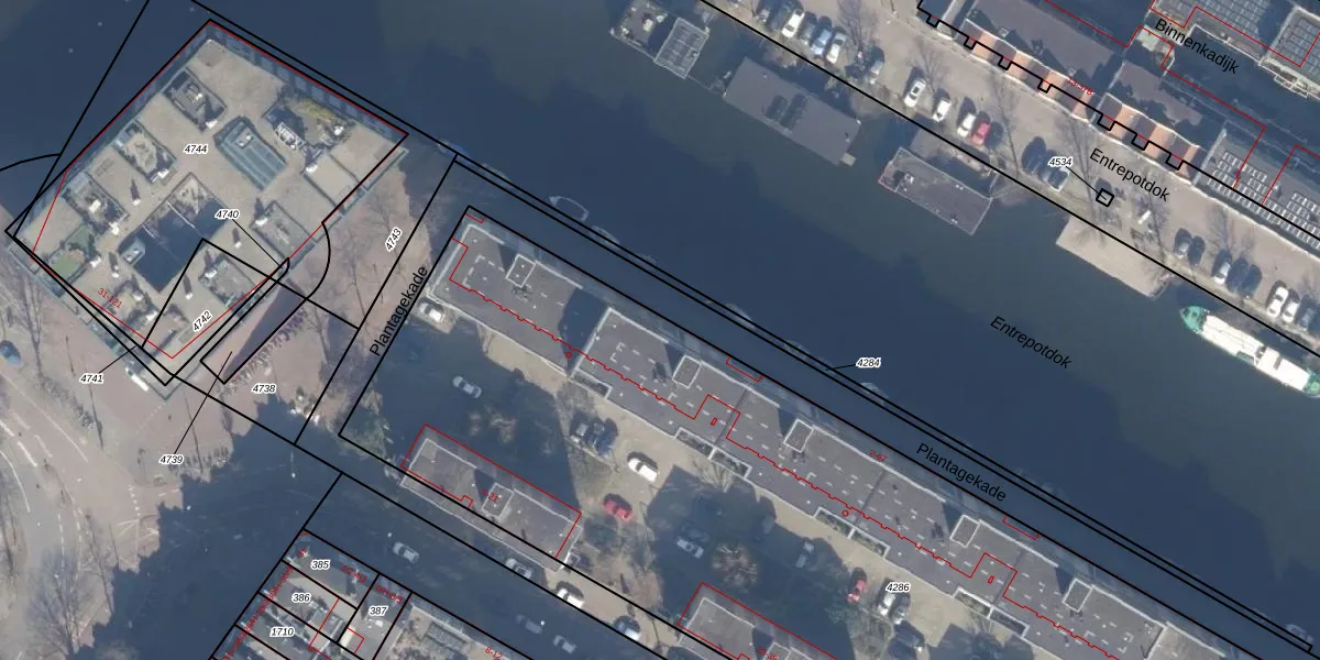 Het perceel waarop Plantagekade 13 staat heeft een oppervlakte van 6402 m². Dit is een zeer groot perceel. De perceeloppervlakte wordt geregistreerd door het Kadaster. Gedetailleerde informatie over de maten van dit perceel kunt u vinden in het rapport Kadastrale kaart met maatvoering van Plantagekade 13.