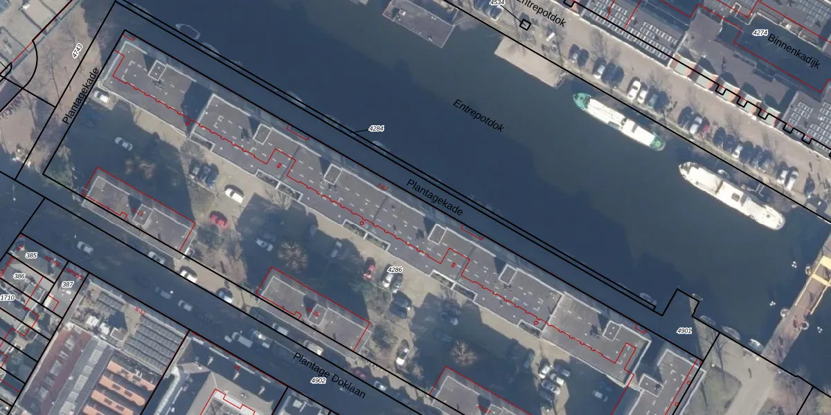 Plantagekade 36 is gelegen op kadastraal perceel ASD11O4286. Deze kadastrale aanduiding is uniek en wordt gebruikt door het Kadaster om eigendomsrechten en andere zakelijke rechten vast te leggen. Het perceel maakt onderdeel uit van de kadastrale gemeente Amsterdam.