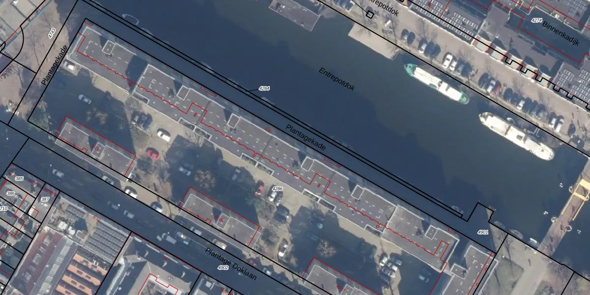 Het perceel waarop Plantagekade 38 staat heeft een oppervlakte van 6402 m². Dit is een zeer groot perceel. De perceeloppervlakte wordt geregistreerd door het Kadaster. Gedetailleerde informatie over de maten van dit perceel kunt u vinden in het rapport Kadastrale kaart met maatvoering van Plantagekade 38.