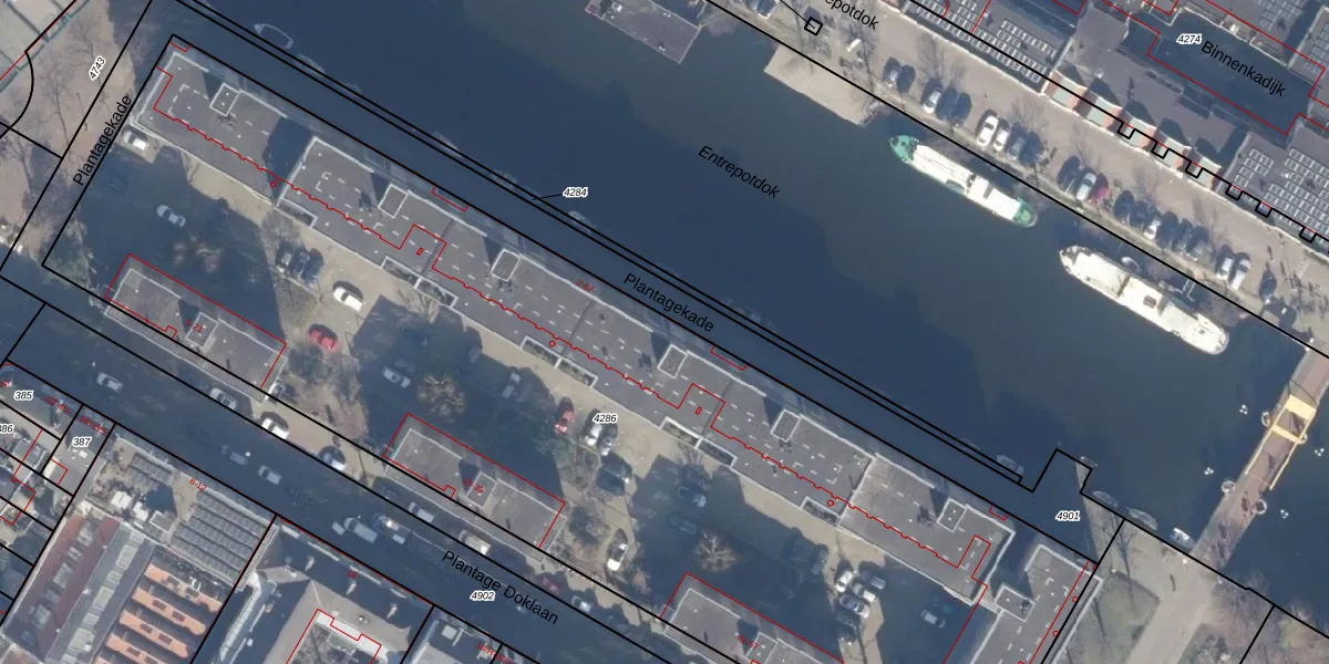 Het perceel waarop Plantagekade 41 staat heeft een oppervlakte van 6402 m². Dit is een zeer groot perceel. De perceeloppervlakte wordt geregistreerd door het Kadaster. Gedetailleerde informatie over de maten van dit perceel kunt u vinden in het rapport Kadastrale kaart met maatvoering van Plantagekade 41.