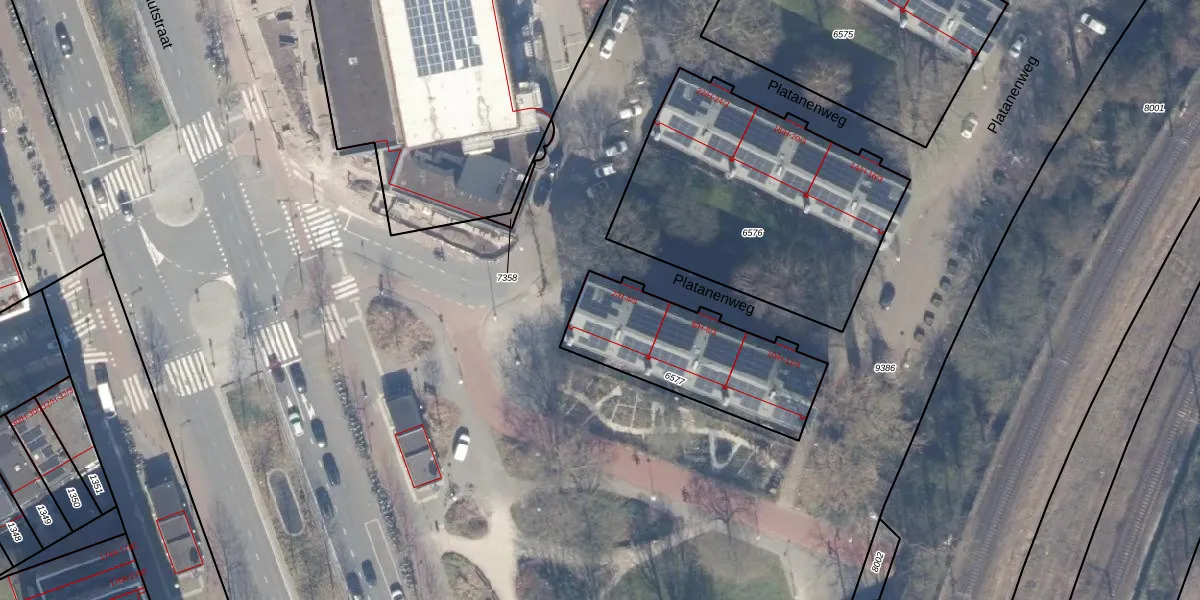 Het perceel waarop Platanenweg 2-3 staat heeft een oppervlakte van 597 m². Dit is een groot perceel. De perceeloppervlakte wordt geregistreerd door het Kadaster. Gedetailleerde informatie over de maten van dit perceel kunt u vinden in het rapport Kadastrale kaart met maatvoering van Platanenweg 2-3.