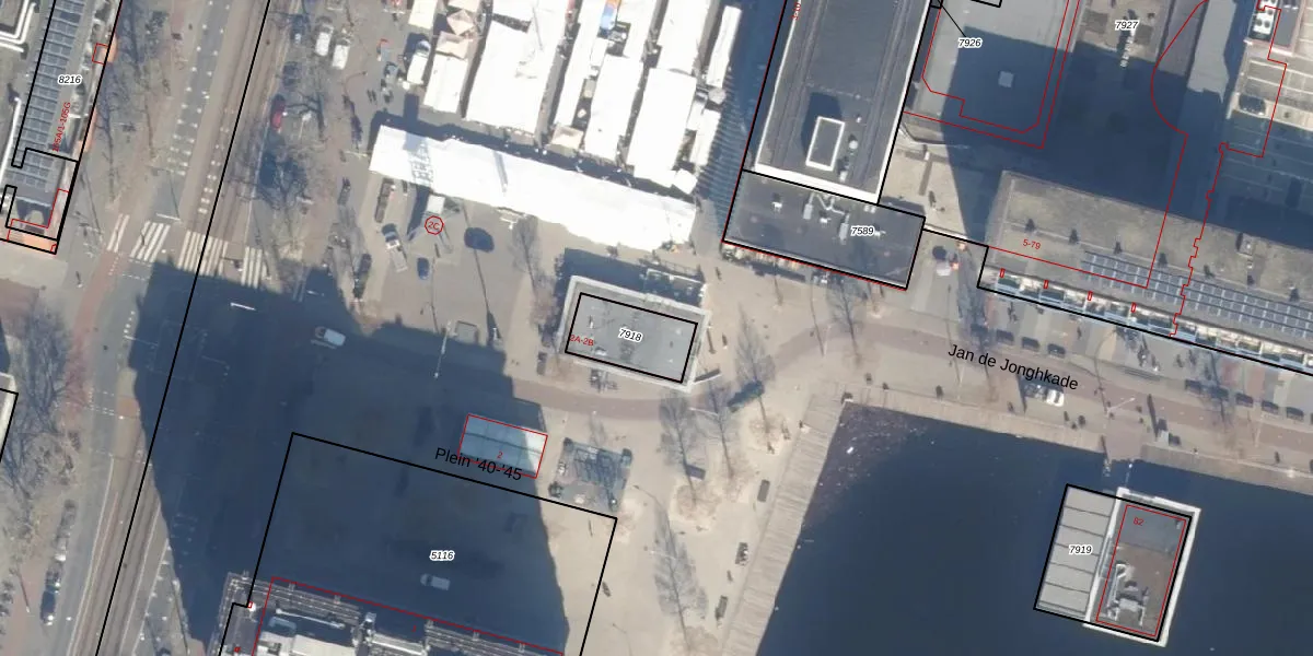 Plein '40-'45 2-B is gelegen in de plaats Amsterdam, de gemeente Amsterdam en de provincie Noord-Holland. De oppervlakte van het adres is 120 m². Dat is vergelijkbaar met het gemiddelde Nederlandse oppervlakte van 119 m². De oppervlakte van het perceel waarin het adres ligt is 169 m². Het adres is klein vergeleken met andere objecten in de straat. Het grootste object in de straat heeft een oppervlakte van 8937 m², het kleinste is 10 m² groot. Het pand waarin Plein '40-'45 2-B ligt is gebouwd in het jaar 2000. Panden die gebouwd zijn na het jaar 1984 noemen we hier relatief nieuw. Dit object is relatief nieuw in de straat. Het nieuwste gebouw komt er uit het jaar 2020 en het oudste uit het jaar 1952. Voor het verblijfsobject gelden deze gebruiksdoelen: 'kantoorfunctie'.