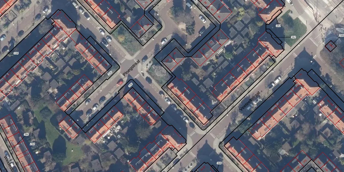 Het perceel waarop Ploegstraat 103 staat heeft een oppervlakte van 6360 m². Dit is een zeer groot perceel. De perceeloppervlakte wordt geregistreerd door het Kadaster. Gedetailleerde informatie over de maten van dit perceel kunt u vinden in het rapport Kadastrale kaart met maatvoering van Ploegstraat 103.