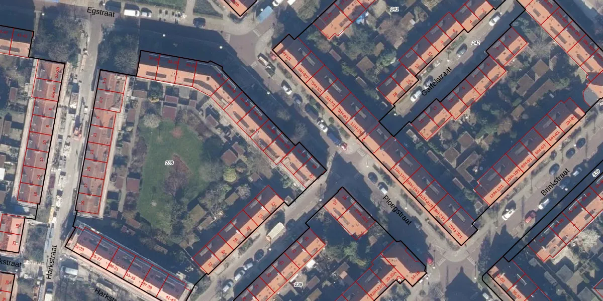 Het perceel waarop Ploegstraat 12 staat heeft een oppervlakte van 4415 m². Dit is een zeer groot perceel. De perceeloppervlakte wordt geregistreerd door het Kadaster. Gedetailleerde informatie over de maten van dit perceel kunt u vinden in het rapport Kadastrale kaart met maatvoering van Ploegstraat 12.