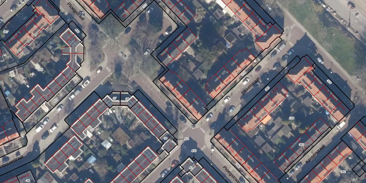 Het perceel waarop Ploegstraat 165 staat heeft een oppervlakte van 5685 m². Dit is een zeer groot perceel. De perceeloppervlakte wordt geregistreerd door het Kadaster. Gedetailleerde informatie over de maten van dit perceel kunt u vinden in het rapport Kadastrale kaart met maatvoering van Ploegstraat 165.