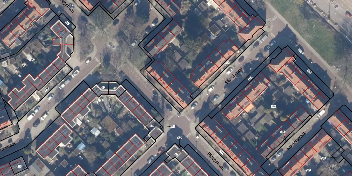 Het perceel waarop Ploegstraat 169 staat heeft een oppervlakte van 5685 m². Dit is een zeer groot perceel. De perceeloppervlakte wordt geregistreerd door het Kadaster. Gedetailleerde informatie over de maten van dit perceel kunt u vinden in het rapport Kadastrale kaart met maatvoering van Ploegstraat 169.