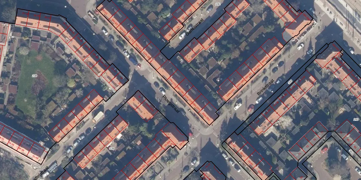 Het perceel waarop Ploegstraat 19-1 staat heeft een oppervlakte van 6185 m². Dit is een zeer groot perceel. De perceeloppervlakte wordt geregistreerd door het Kadaster. Gedetailleerde informatie over de maten van dit perceel kunt u vinden in het rapport Kadastrale kaart met maatvoering van Ploegstraat 19-1.