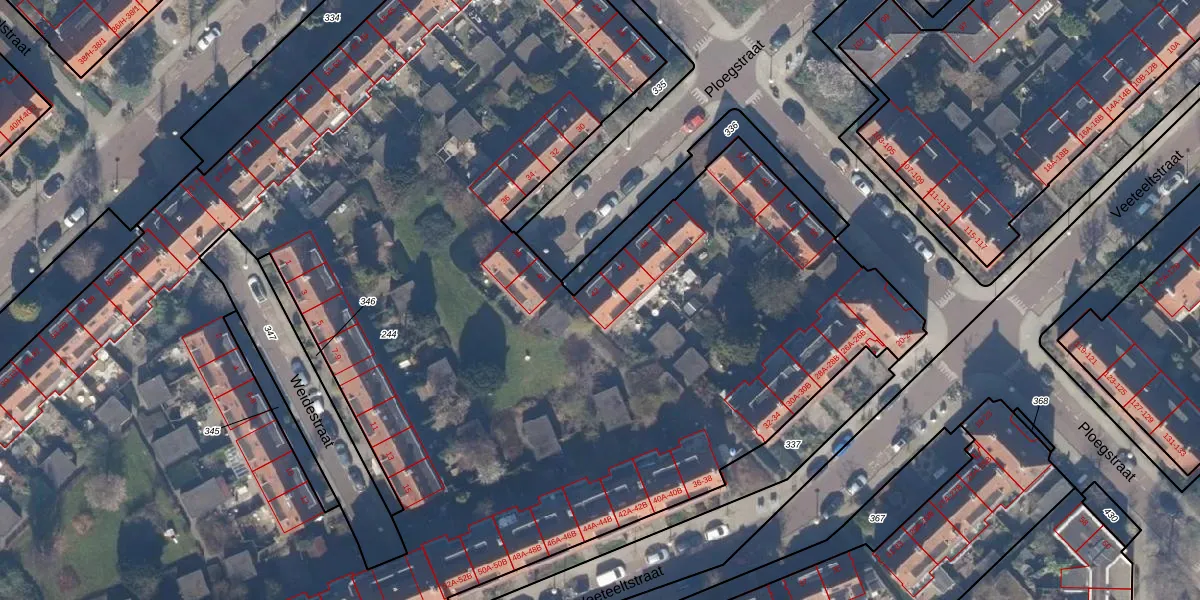 Ploegstraat 42 is gelegen op kadastraal perceel WTG02C244. Deze kadastrale aanduiding is uniek en wordt gebruikt door het Kadaster om eigendomsrechten en andere zakelijke rechten vast te leggen. Het perceel maakt onderdeel uit van de kadastrale gemeente Watergraafsmeer.