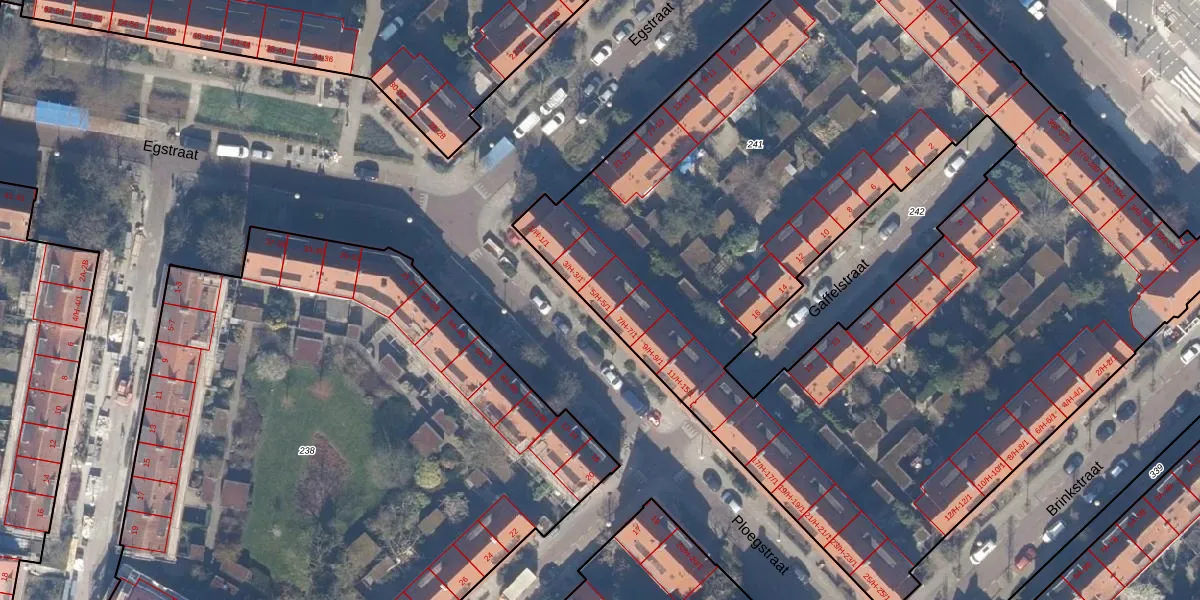 Het perceel waarop Ploegstraat 5-H staat heeft een oppervlakte van 6185 m². Dit is een zeer groot perceel. De perceeloppervlakte wordt geregistreerd door het Kadaster. Gedetailleerde informatie over de maten van dit perceel kunt u vinden in het rapport Kadastrale kaart met maatvoering van Ploegstraat 5-H.