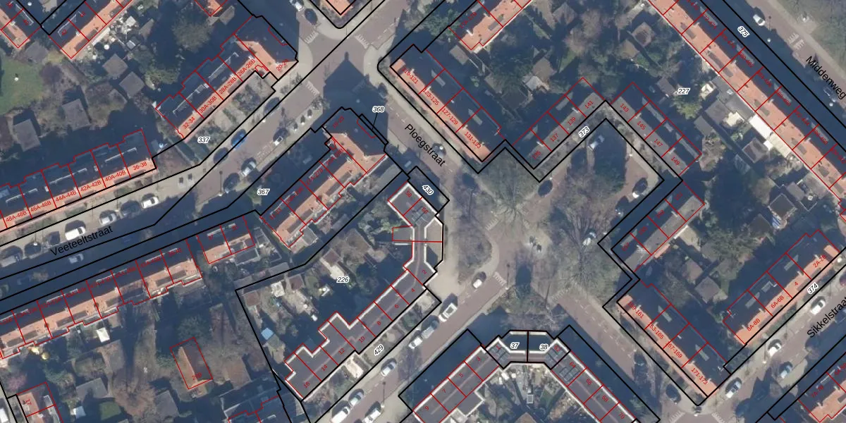 Het perceel waarop Ploegstraat 60 staat heeft een oppervlakte van 1260 m². Dit is een zeer groot perceel. De perceeloppervlakte wordt geregistreerd door het Kadaster. Gedetailleerde informatie over de maten van dit perceel kunt u vinden in het rapport Kadastrale kaart met maatvoering van Ploegstraat 60.