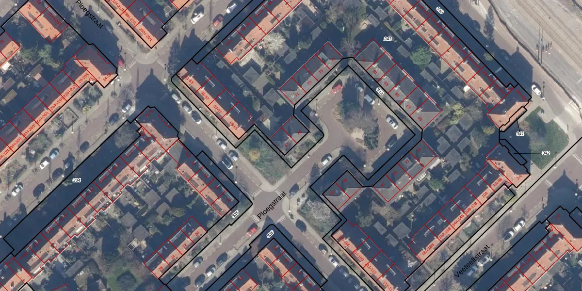 Het perceel waarop Ploegstraat 67 staat heeft een oppervlakte van 6360 m². Dit is een zeer groot perceel. De perceeloppervlakte wordt geregistreerd door het Kadaster. Gedetailleerde informatie over de maten van dit perceel kunt u vinden in het rapport Kadastrale kaart met maatvoering van Ploegstraat 67.