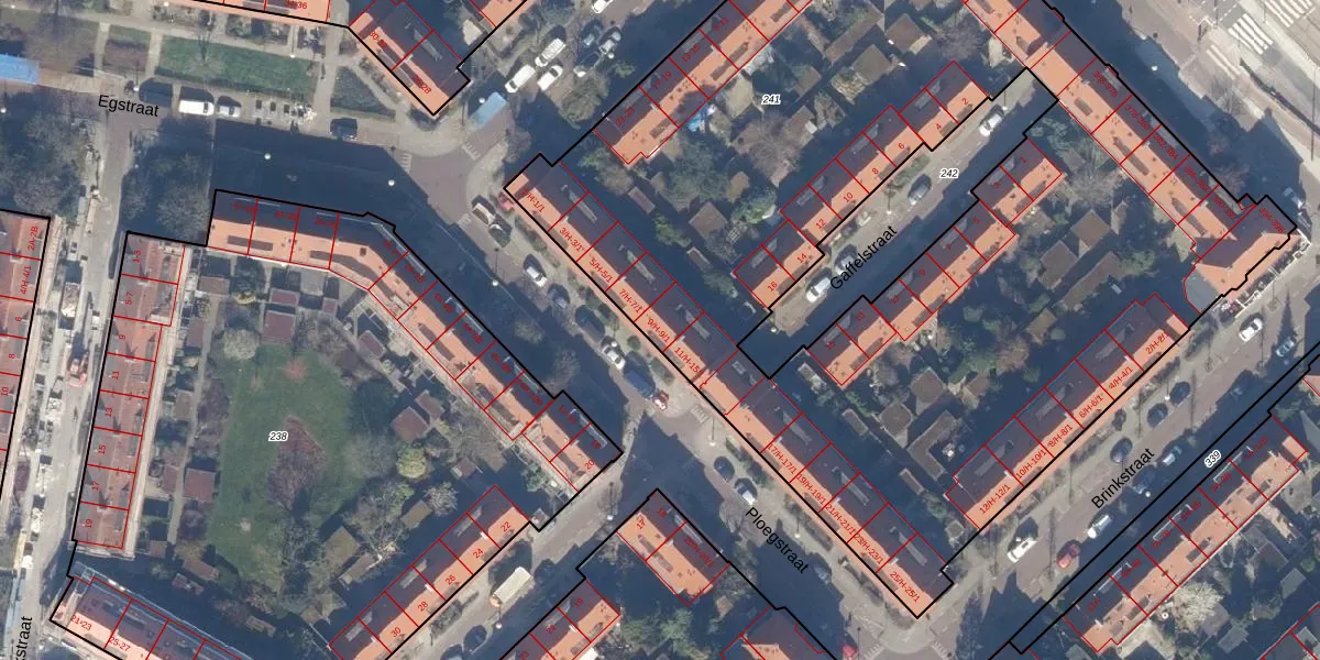 Het perceel waarop Ploegstraat 9-1 staat heeft een oppervlakte van 6185 m². Dit is een zeer groot perceel. De perceeloppervlakte wordt geregistreerd door het Kadaster. Gedetailleerde informatie over de maten van dit perceel kunt u vinden in het rapport Kadastrale kaart met maatvoering van Ploegstraat 9-1.