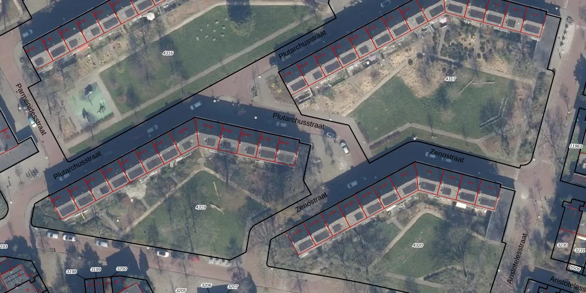 Plutarchusstraat 29 is gelegen op kadastraal perceel STN02D4319. Deze kadastrale aanduiding is uniek en wordt gebruikt door het Kadaster om eigendomsrechten en andere zakelijke rechten vast te leggen. Het perceel maakt onderdeel uit van de kadastrale gemeente Sloten Noord-Holland.