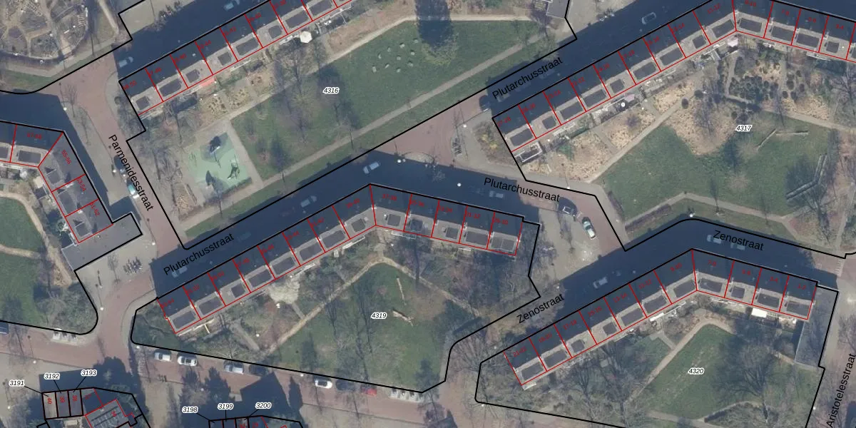 Plutarchusstraat 35 is gelegen op kadastraal perceel STN02D4319. Deze kadastrale aanduiding is uniek en wordt gebruikt door het Kadaster om eigendomsrechten en andere zakelijke rechten vast te leggen. Het perceel maakt onderdeel uit van de kadastrale gemeente Sloten Noord-Holland.