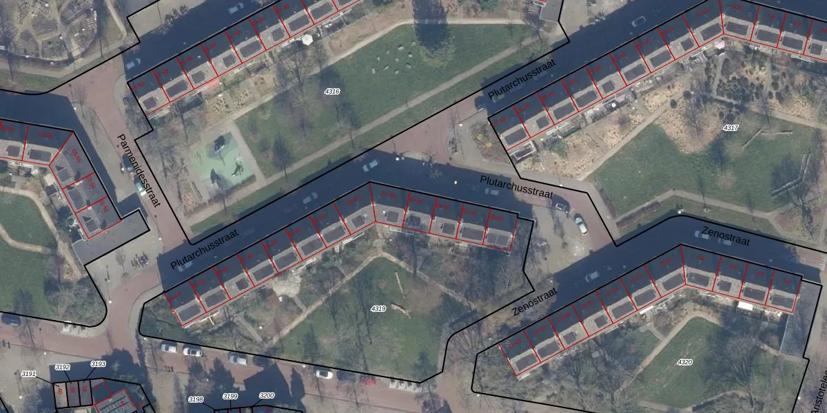 Plutarchusstraat 36 is gelegen op kadastraal perceel STN02D4319. Deze kadastrale aanduiding is uniek en wordt gebruikt door het Kadaster om eigendomsrechten en andere zakelijke rechten vast te leggen. Het perceel maakt onderdeel uit van de kadastrale gemeente Sloten Noord-Holland.
