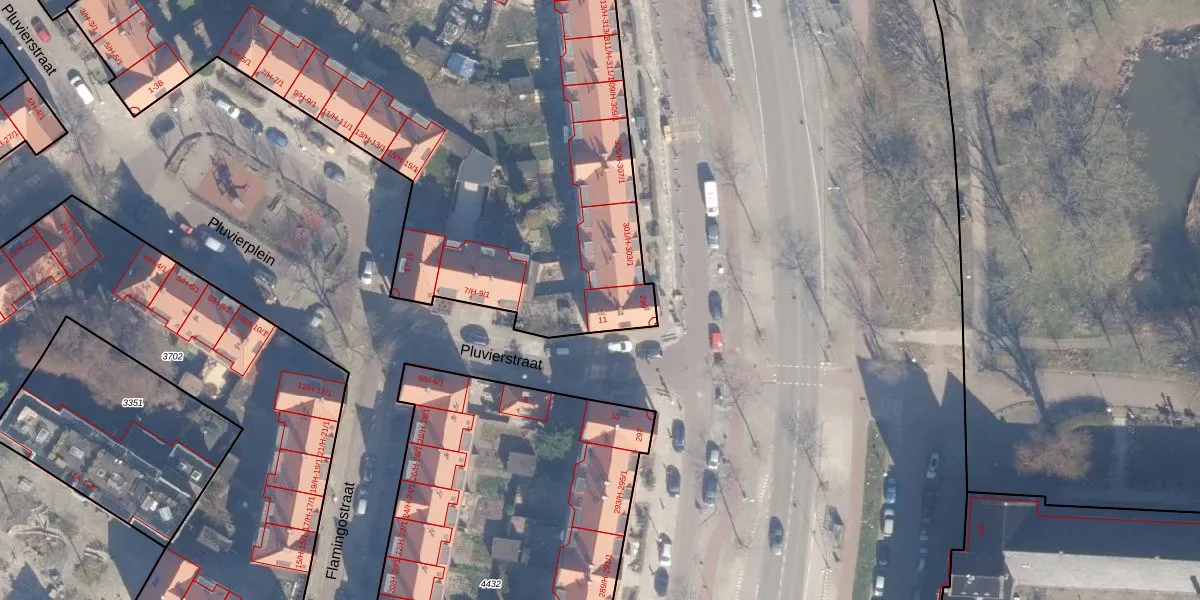 Het perceel waarop Pluvierstraat 11-D staat heeft een oppervlakte van 4185 m². Dit is een zeer groot perceel. De perceeloppervlakte wordt geregistreerd door het Kadaster. Gedetailleerde informatie over de maten van dit perceel kunt u vinden in het rapport Kadastrale kaart met maatvoering van Pluvierstraat 11-D.