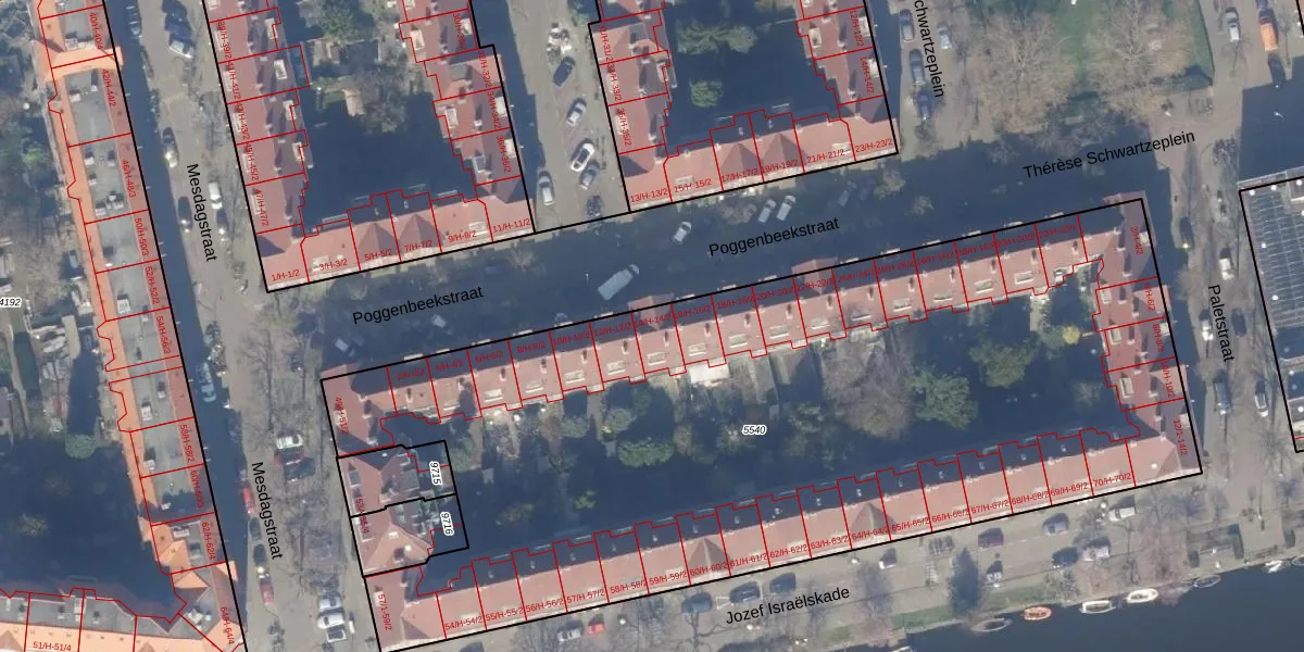 Het adres is gelegen op perceel 5540 in de sectie V en de kadastrale gemeente Amsterdam. De kadastrale aanduiding is aldus ASD18-V-5540. Het perceel is met 5245 m² relatief groot. Het gemiddelde ligt in de kadastrale gemeente Amsterdam op 558,8 m². Het grootste perceel in de kadastrale gemeente is 12,5 ha. Het kleinste perceel heeft een oppervlakte van 0 m². Op het perceel zijn 131 adressen aanwezig. De laatste wijziging in het de Basisregistratie Kadaster (BRK) was op 09-08-2006.