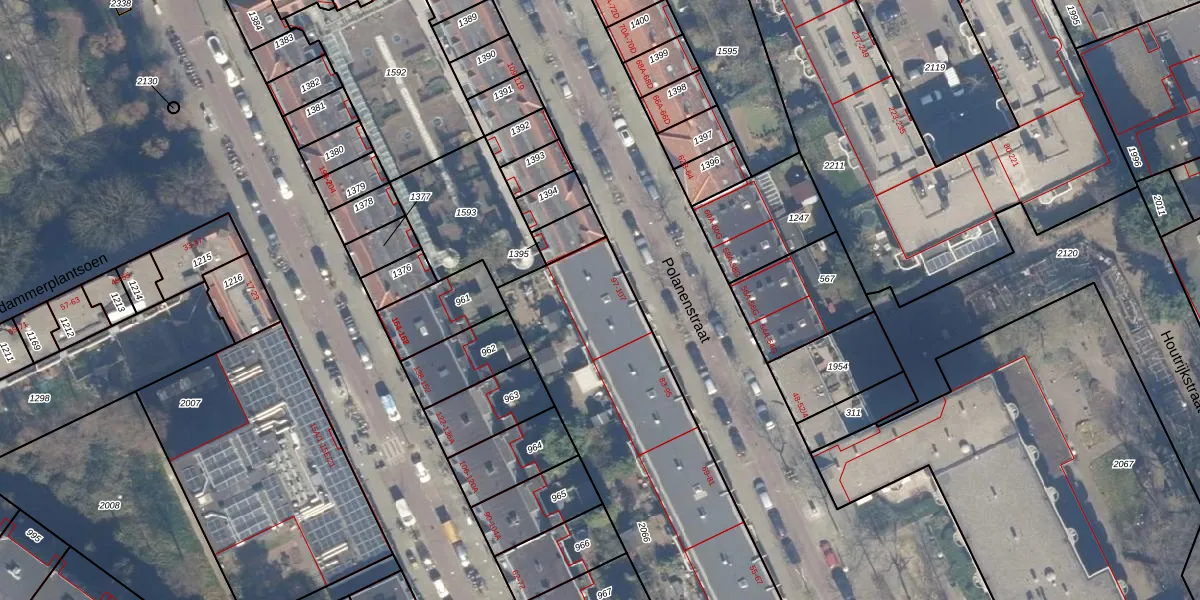 Het perceel waarop Polanenstraat 105 staat heeft een oppervlakte van 2353 m². Dit is een zeer groot perceel. De perceeloppervlakte wordt geregistreerd door het Kadaster. Gedetailleerde informatie over de maten van dit perceel kunt u vinden in het rapport Kadastrale kaart met maatvoering van Polanenstraat 105.