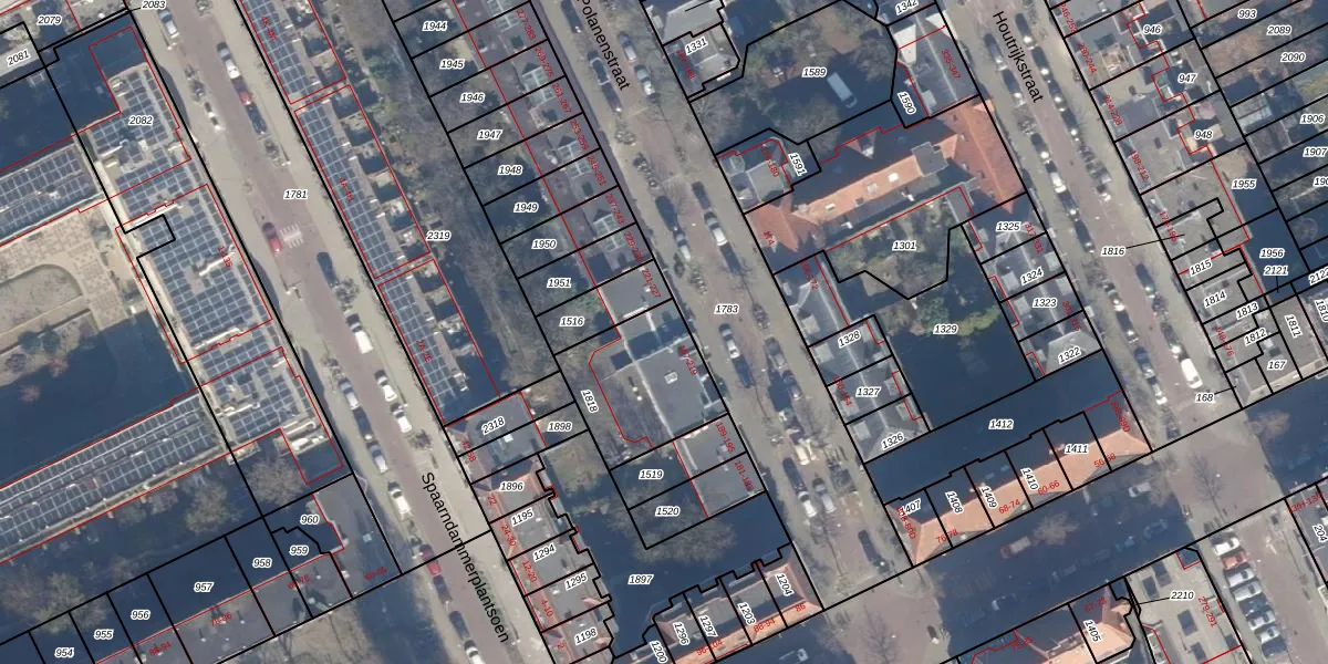 Het perceel waarop Polanenstraat 215 staat heeft een oppervlakte van 383 m². Dit is een groot perceel. De perceeloppervlakte wordt geregistreerd door het Kadaster. Gedetailleerde informatie over de maten van dit perceel kunt u vinden in het rapport Kadastrale kaart met maatvoering van Polanenstraat 215.
