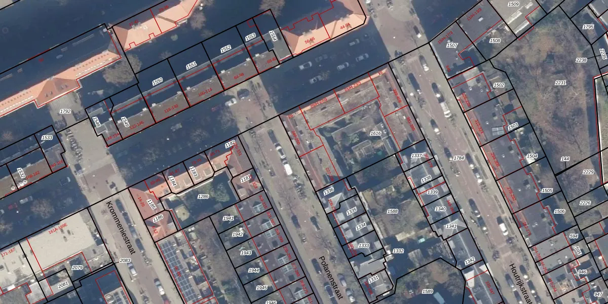 Het adres is gelegen op perceel 1616 in de sectie X en de kadastrale gemeente Amsterdam. De kadastrale aanduiding is aldus ASD20-X-1616. De oppervlakte van het perceel is 1120 m². Dat is groter dan gemiddeld in Amsterdam, waar de gemiddelde perceeloppervlakte op 466,51 m² ligt. Het grootste perceel in de kadastrale gemeente is 3,6 ha. Het kleinste perceel heeft een oppervlakte van 0 m². Er zijn 46 adressen aanwezig op het perceel. De laatste wijziging in het de Basisregistratie Kadaster (BRK) was op 23-11-2006.