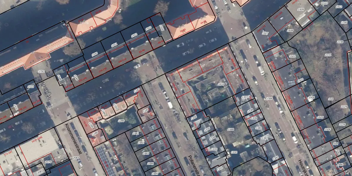 Het adres is gelegen op perceel 1616 in de sectie X en de kadastrale gemeente Amsterdam. De kadastrale aanduiding is aldus ASD20-X-1616. De oppervlakte van het perceel is 1120 m². Dat is groter dan gemiddeld in Amsterdam, waar de gemiddelde perceeloppervlakte op 466,51 m² ligt. Het grootste perceel in de kadastrale gemeente is 3,6 ha. Het kleinste perceel heeft een oppervlakte van 0 m². Er zijn 46 adressen aanwezig op het perceel. In de Basisregistratie Kadaster (BRK) werden de grenzen van het perceel geregistreerd op 23-11-2006.