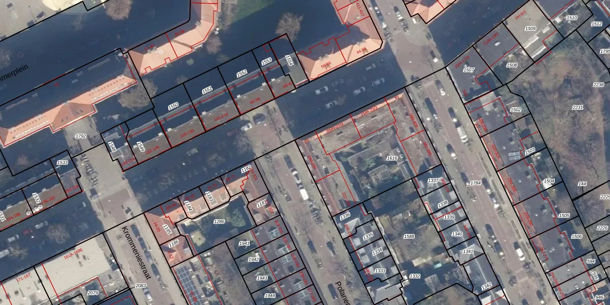 Het adres is gelegen op perceel 1616 in de sectie X en de kadastrale gemeente Amsterdam. De kadastrale aanduiding is aldus ASD20-X-1616. De oppervlakte van het perceel is 1120 m². Dat is groter dan gemiddeld in Amsterdam, waar de gemiddelde perceeloppervlakte op 466,51 m² ligt. Het grootste perceel in de kadastrale gemeente is 3,6 ha. Het kleinste perceel heeft een oppervlakte van 0 m². Op het perceel zijn 46 adressen aanwezig. De huidige grenzen van het perceel zijn digitaal in de Basisregistratie Kadaster (BRK) geregistreerd op 23-11-2006.