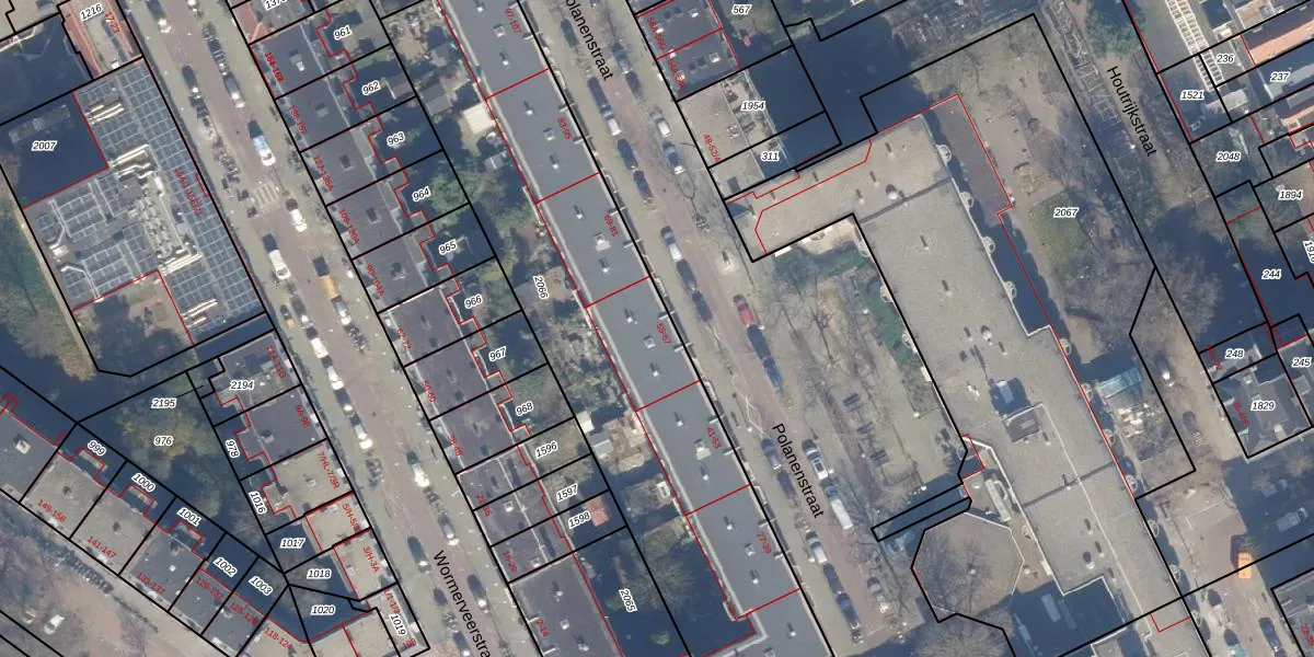 Het perceel waarop Polanenstraat 57 staat heeft een oppervlakte van 2353 m². Dit is een zeer groot perceel. De perceeloppervlakte wordt geregistreerd door het Kadaster. Gedetailleerde informatie over de maten van dit perceel kunt u vinden in het rapport Kadastrale kaart met maatvoering van Polanenstraat 57.