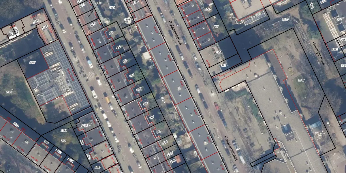 Het perceel waarop Polanenstraat 81 staat heeft een oppervlakte van 2353 m². Dit is een zeer groot perceel. De perceeloppervlakte wordt geregistreerd door het Kadaster. Gedetailleerde informatie over de maten van dit perceel kunt u vinden in het rapport Kadastrale kaart met maatvoering van Polanenstraat 81.