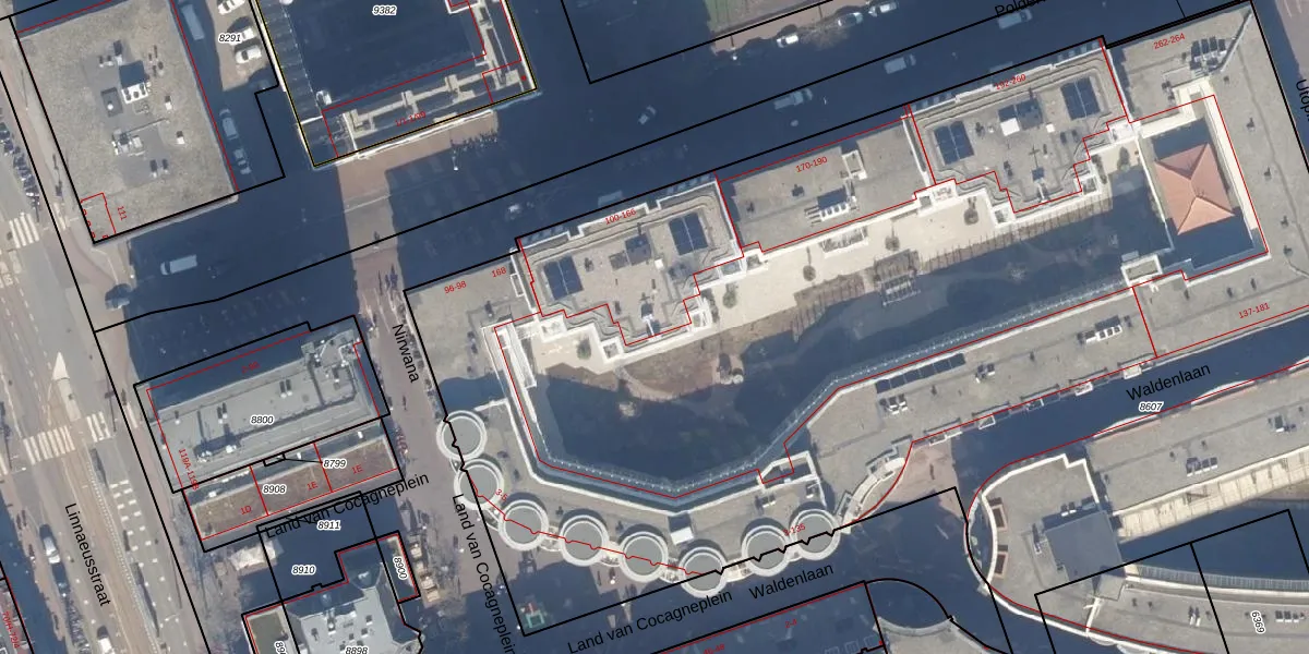Het adres ligt op het perceel ASD19-W-8607, dat zich in de kadastrale gemeente Amsterdam bevindt. Het perceel is met 1,4 ha relatief groot. Het gemiddelde ligt in de kadastrale gemeente Amsterdam op 1563,05 m². Het grootste perceel in de kadastrale gemeente is 17,9 ha. Het kleinste perceel heeft een oppervlakte van 0 m². Op het perceel liggen in totaal 312 adressen. De huidige grenzen van het perceel zijn digitaal in de Basisregistratie Kadaster (BRK) geregistreerd op 29-11-2010.