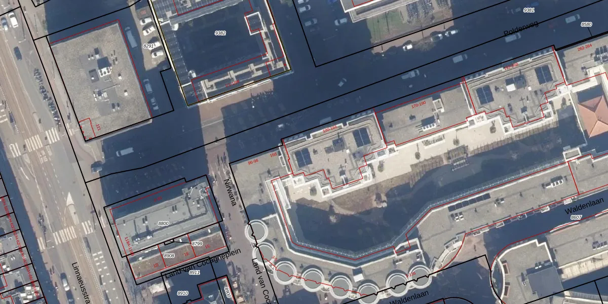 Het adres ligt op het perceel ASD19-W-8607, dat zich in de kadastrale gemeente Amsterdam bevindt. Het perceel is met 1,4 ha relatief groot. Het gemiddelde ligt in de kadastrale gemeente Amsterdam op 1563,05 m². De grootste perceeloppervlakte in de kadastrale gemeente is 17,9 ha. De kleinste oppervlakte bedraagt 0 m². Op het perceel liggen in totaal 312 adressen. In de Basisregistratie Kadaster (BRK) werden de grenzen van het perceel geregistreerd op 29-11-2010.